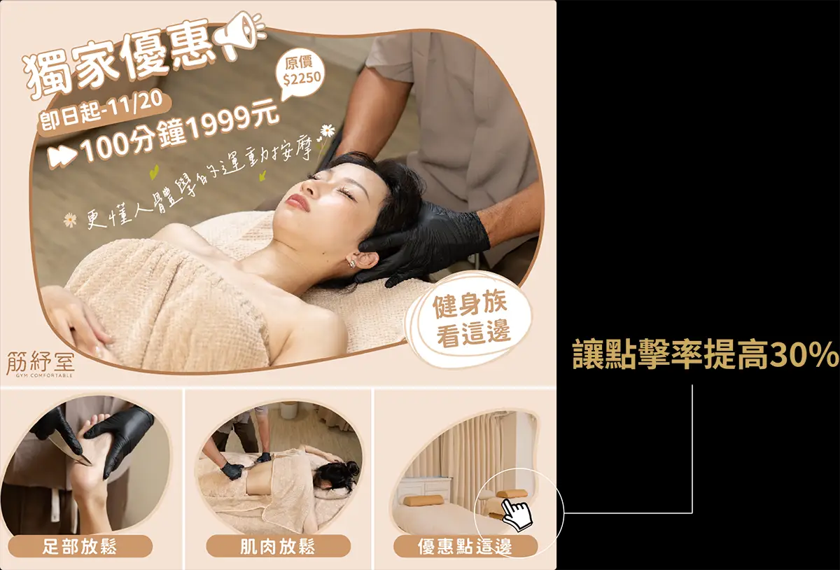 想推廣新品、活動、優惠或是只要想提醒會員,我們有豐富的廣告設計經驗,可以讓您的 LINE@ 廣告增加更多點擊率,同時可以針對你的受眾去做設計。
