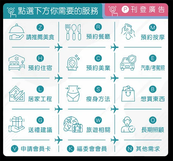 如果普通的自動回覆無法滿足需求,我們也可以幫您規劃更進階的,可選的訊息選單,每個隔都對應著一個回覆,讓客戶能自行選擇需要的服務。